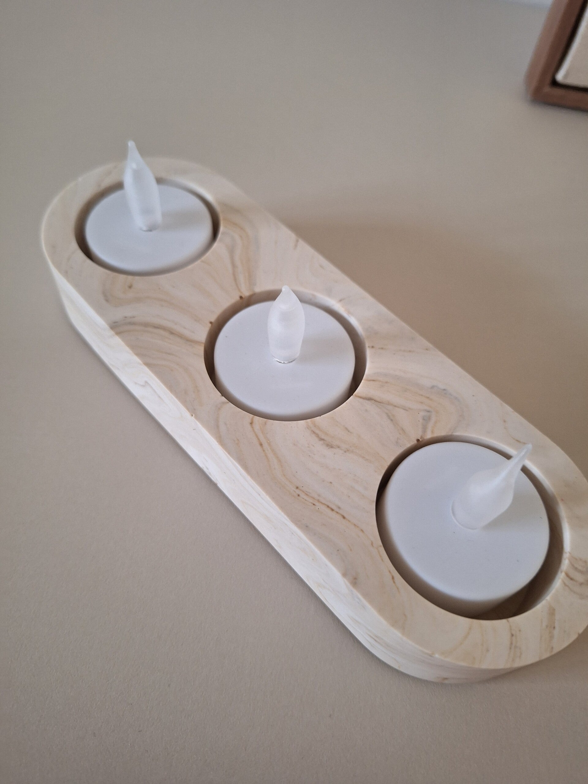 Deze stijlvolle theelichthouder van Jesmonite is een prachtige manier om sfeer te creëren in je interieur. Het minimalistische ontwerp past in elk type ruimte, of je nu een rustige hoek wilt verlichten of een centraal element zoekt voor op tafel.