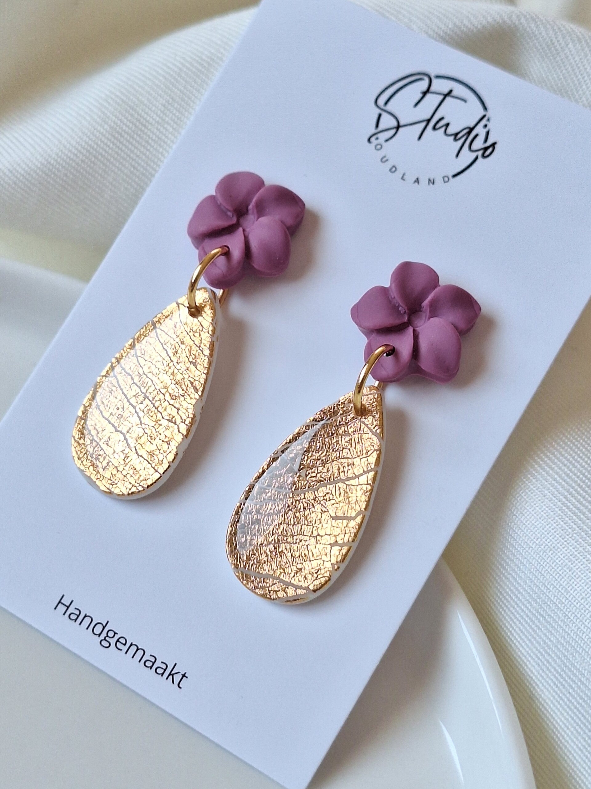 Deze elegante oorbel met een bloem in het ontwerp voegt een verfijnde en vrouwelijke touch toe aan je look. Gemaakt van polymeerklei, is de oorbel licht van gewicht en comfortabel om te dragen.