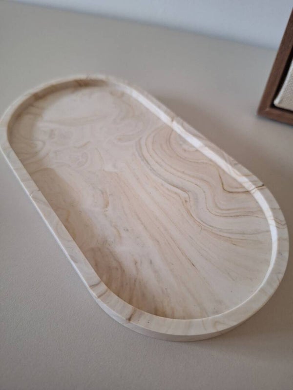 Deze ovale schaal van Jesmonite is niet alleen een prachtige decoratie, maar ook multifunctioneel. Gebruik hem als onderzetter voor je favoriete kandelaar, bewaar er je sieraden op of zet er je amberblokje op. Veelzijdig, praktisch en een echte eyecatcher!