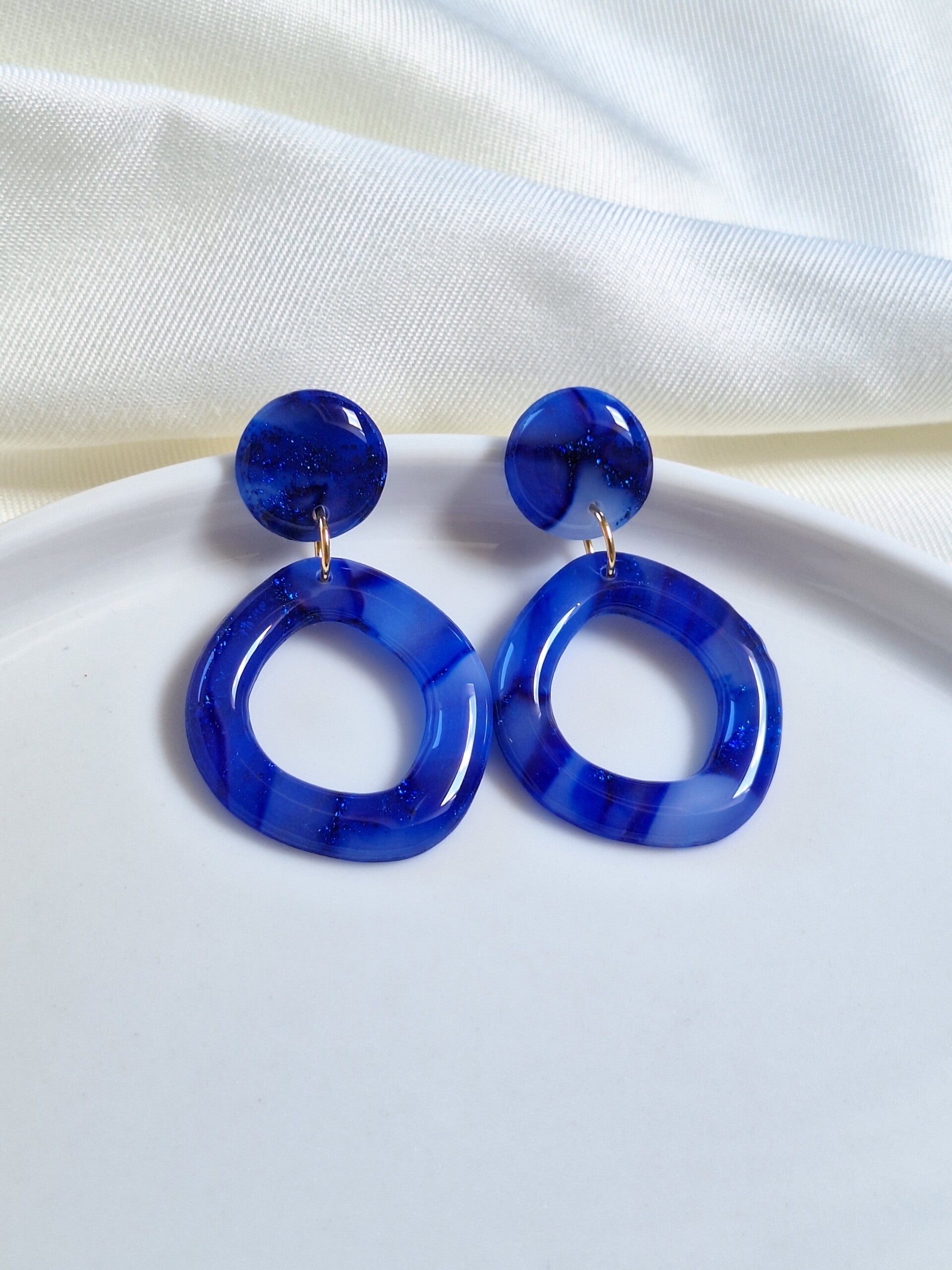 Deze blauwe oorbellen zijn gemaakt van transparante polymeerklei en zijn voorzien van een glanslaagje. Door het gebruik van transparante polymeerklei krijgen deze oorbellen een speels effect; afhankelijk van het licht veranderen ze subtiel van kleur, wat zorgt voor een unieke uitstraling. Ze zijn licht van gewicht, perfect voor elke gelegenheid!