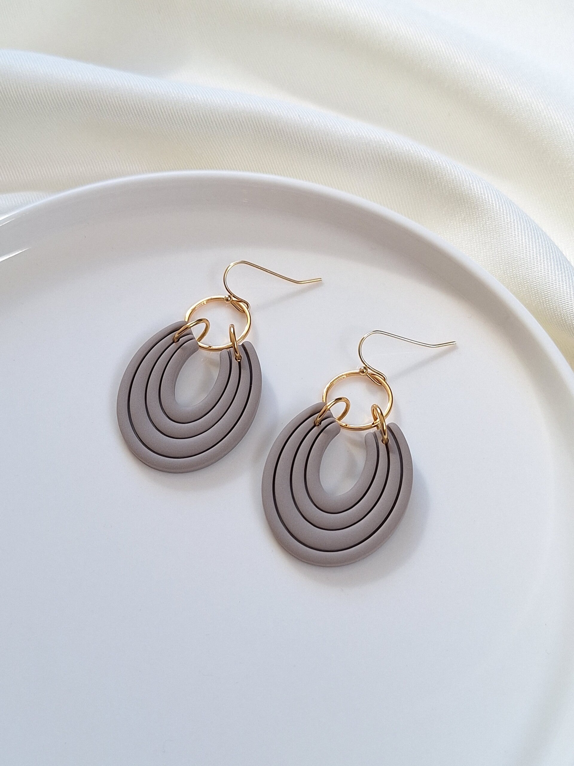 Deze oorbellen, gemaakt van polymeerklei, hebben een elegante uitstraling en zijn perfect te combineren met elke outfit. Dankzij de neutrale kleuren passen ze bij elke stijl, van casual tot chic. Lichtgewicht en comfortabel om te dragen.