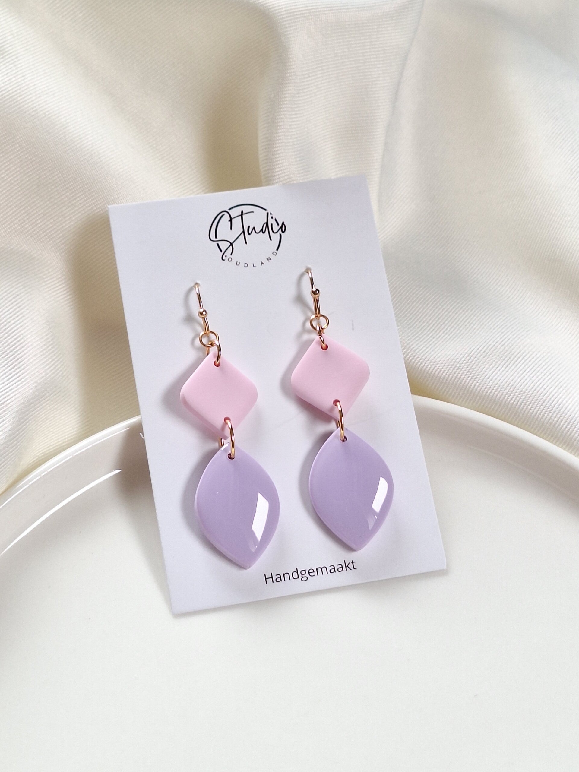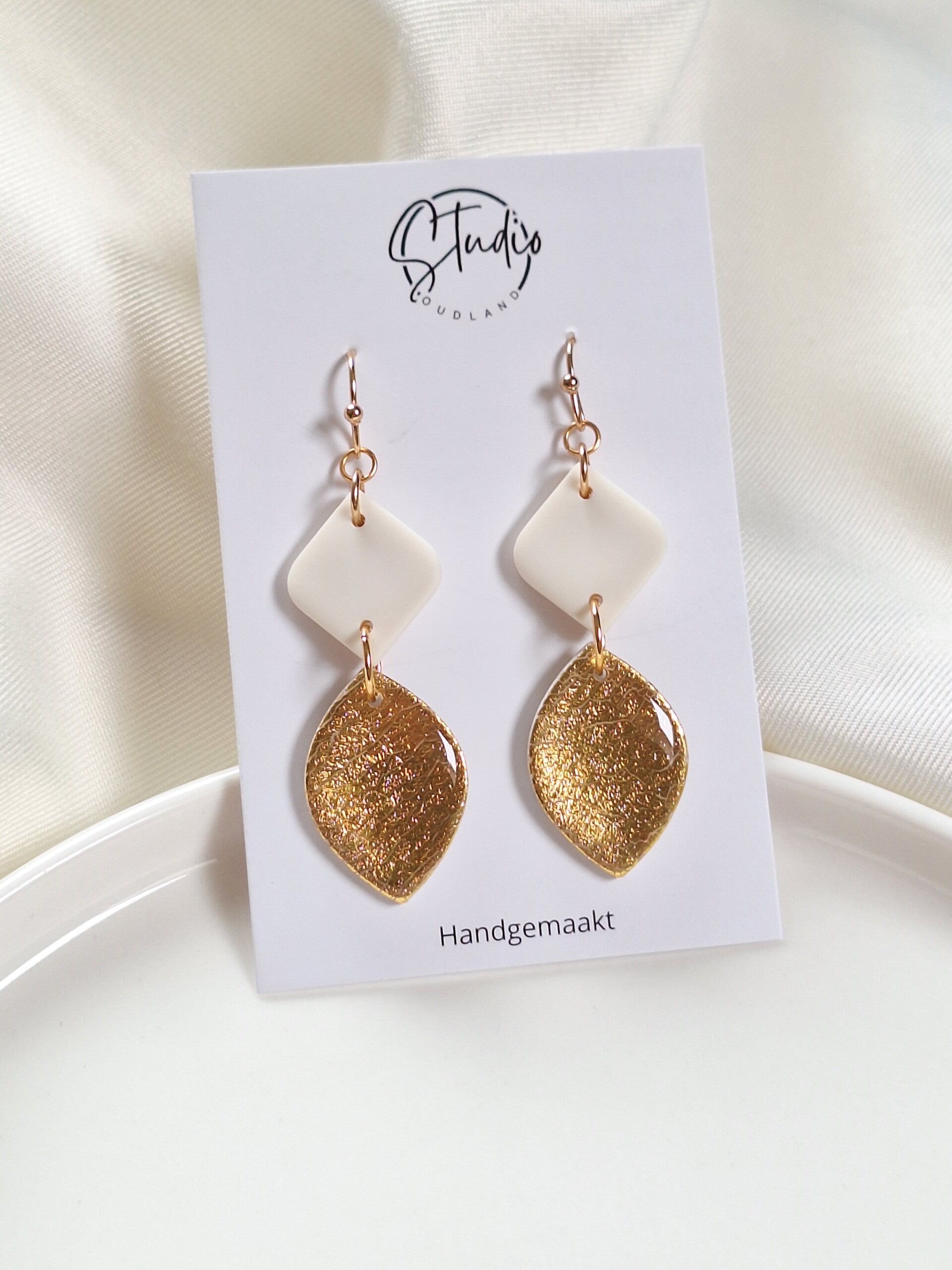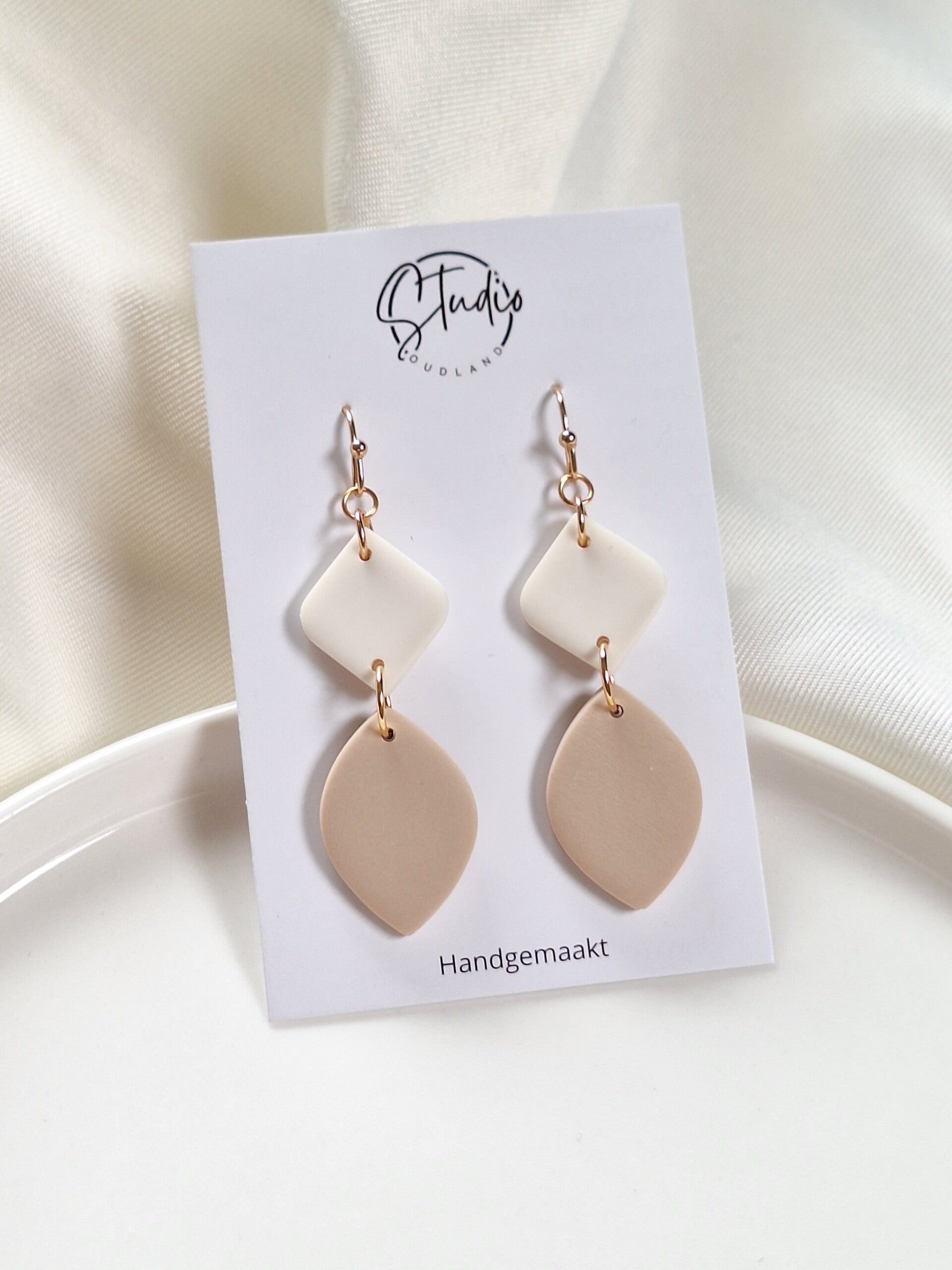 Deze oorbellen, gemaakt van polymeerklei, hebben een elegante uitstraling en zijn perfect te combineren met elke outfit. Dankzij de neutrale kleuren passen ze bij elke stijl, van casual tot chic. Lichtgewicht en comfortabel om te dragen.