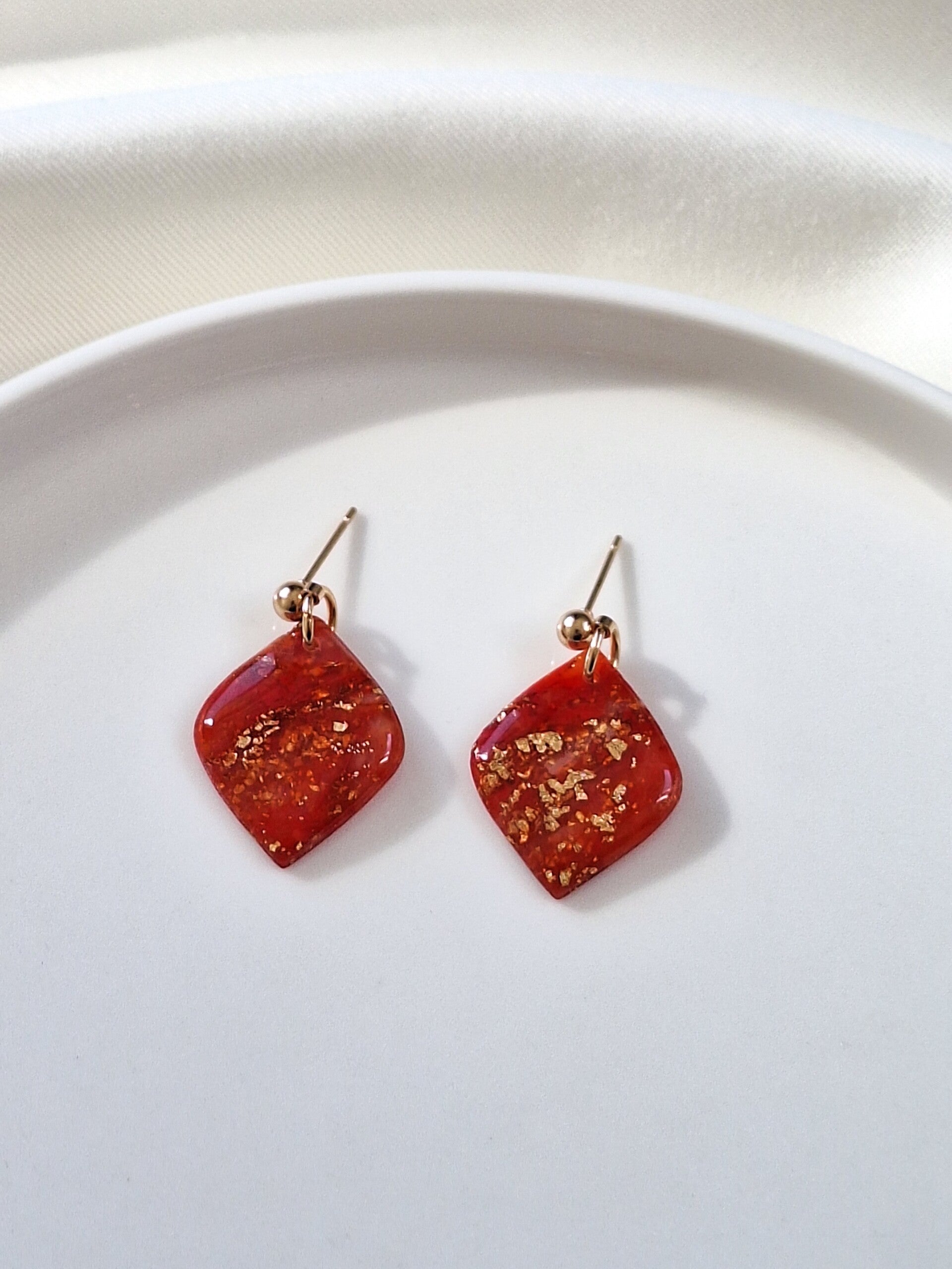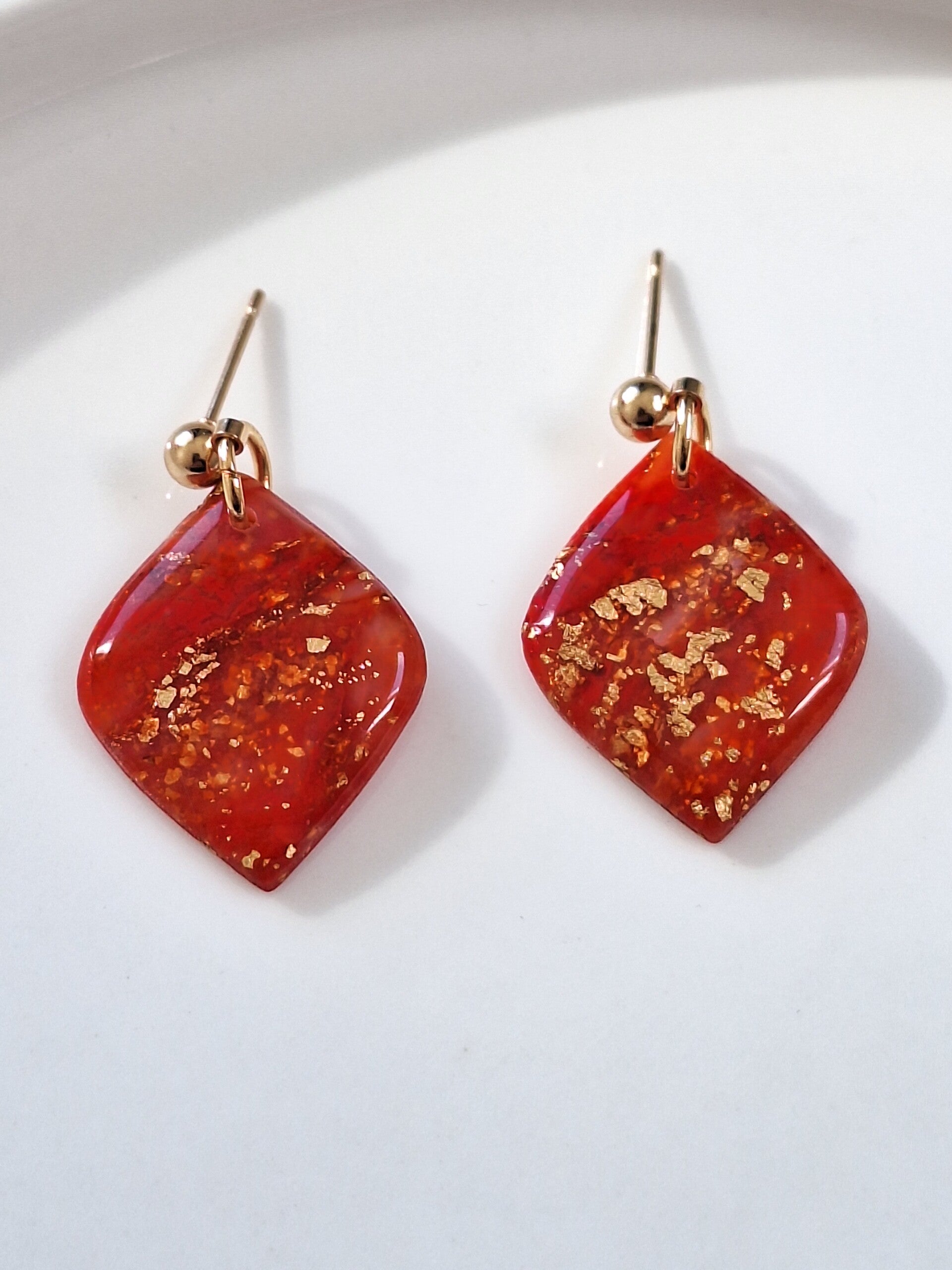 Deze rode oorbellen zijn gemaakt van transparante polymeerklei en zijn voorzien van een glanslaagje. Door het gebruik van transparante polymeerklei krijgen deze oorbellen een speels effect; afhankelijk van het licht veranderen ze subtiel van kleur, wat zorgt voor een unieke uitstraling.
