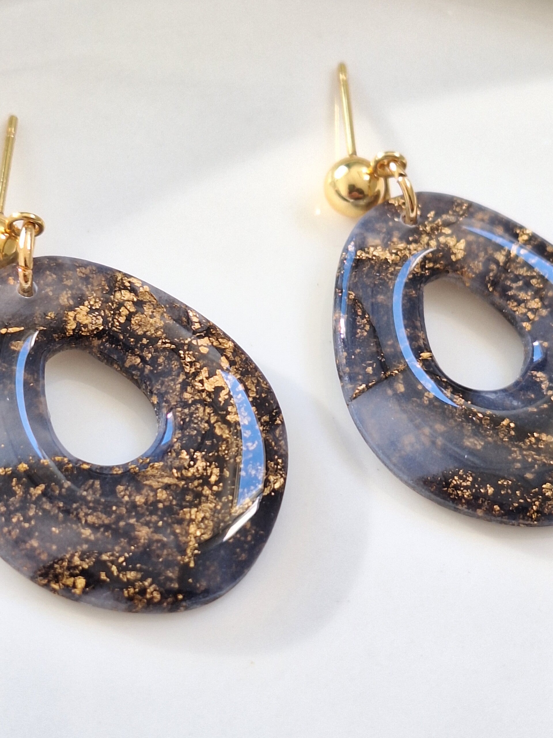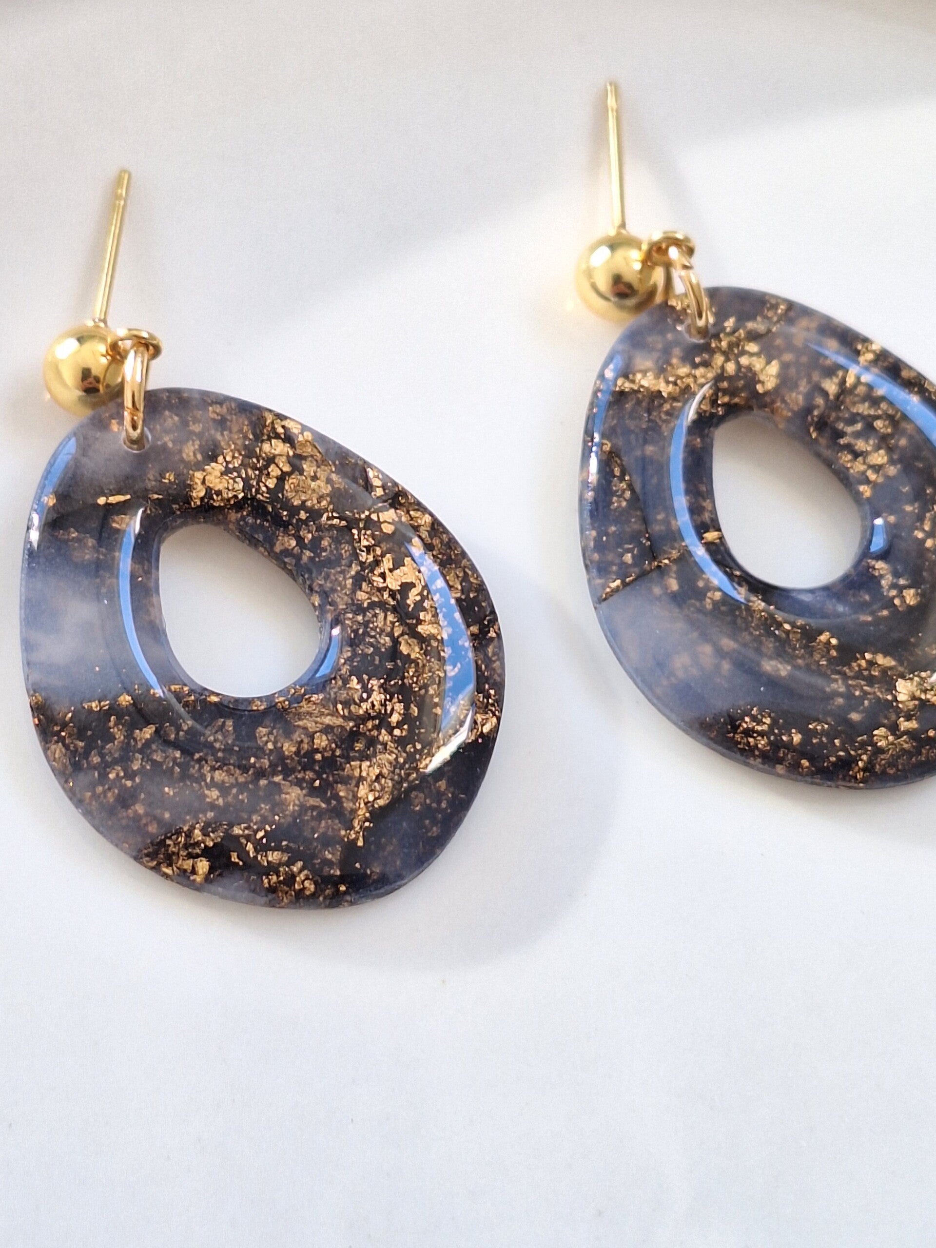 Deze zwarte oorbellen zijn gemaakt van transparante polymeerklei en zijn voorzien van een glanslaagje. Door het gebruik van transparante polymeerklei krijgen deze oorbellen een speels effect; afhankelijk van het licht veranderen ze subtiel van kleur, wat zorgt voor een unieke uitstraling.