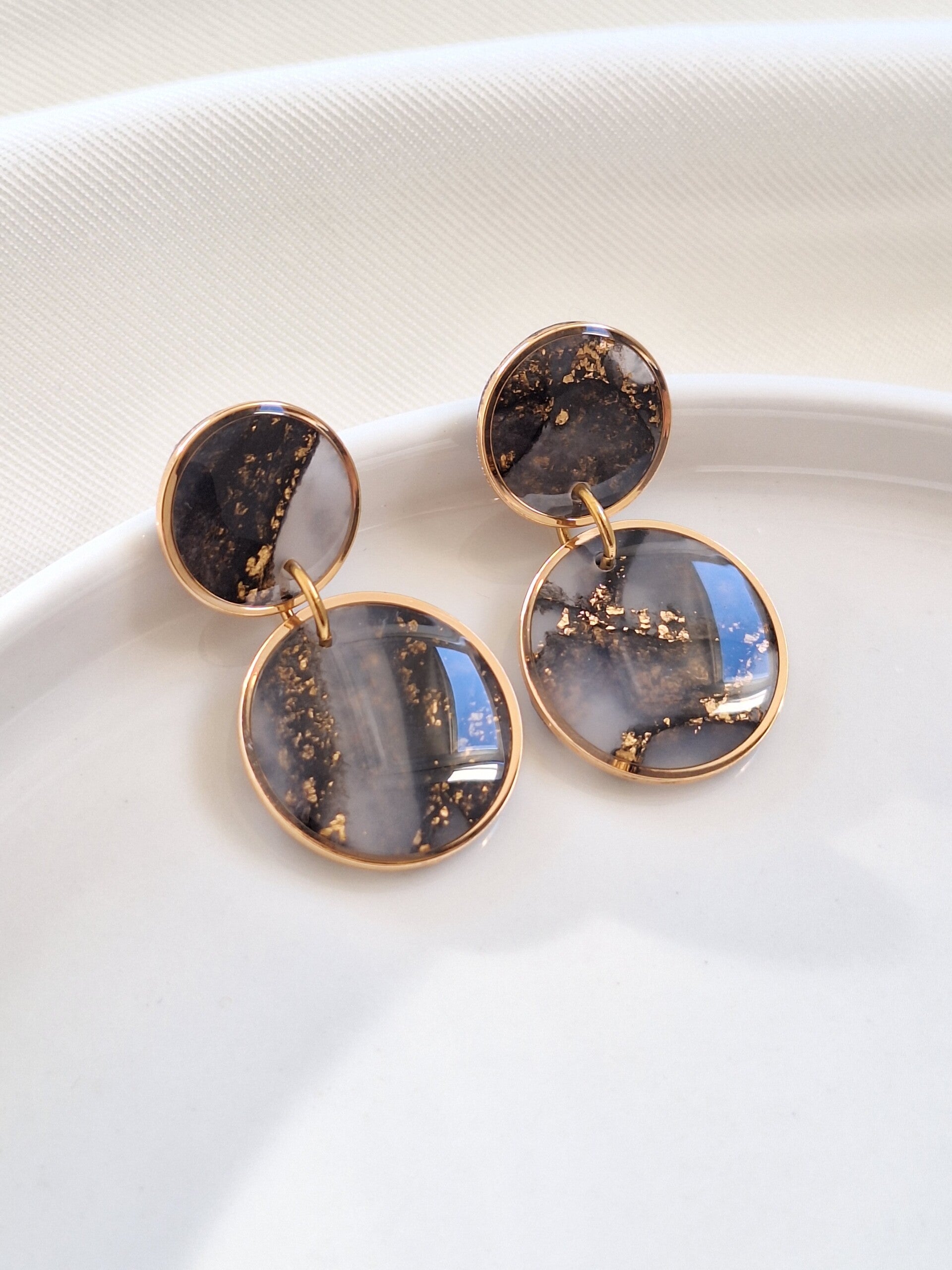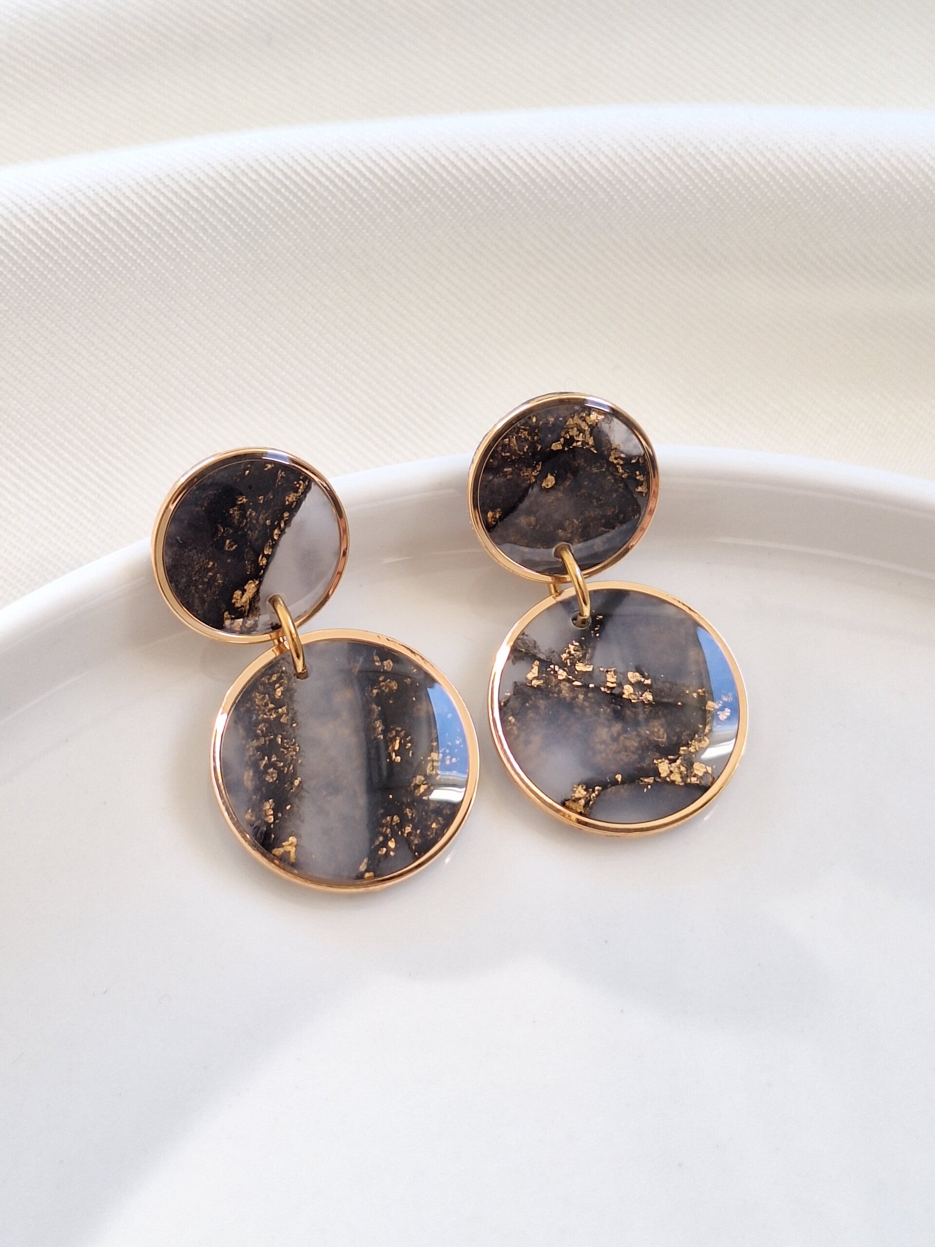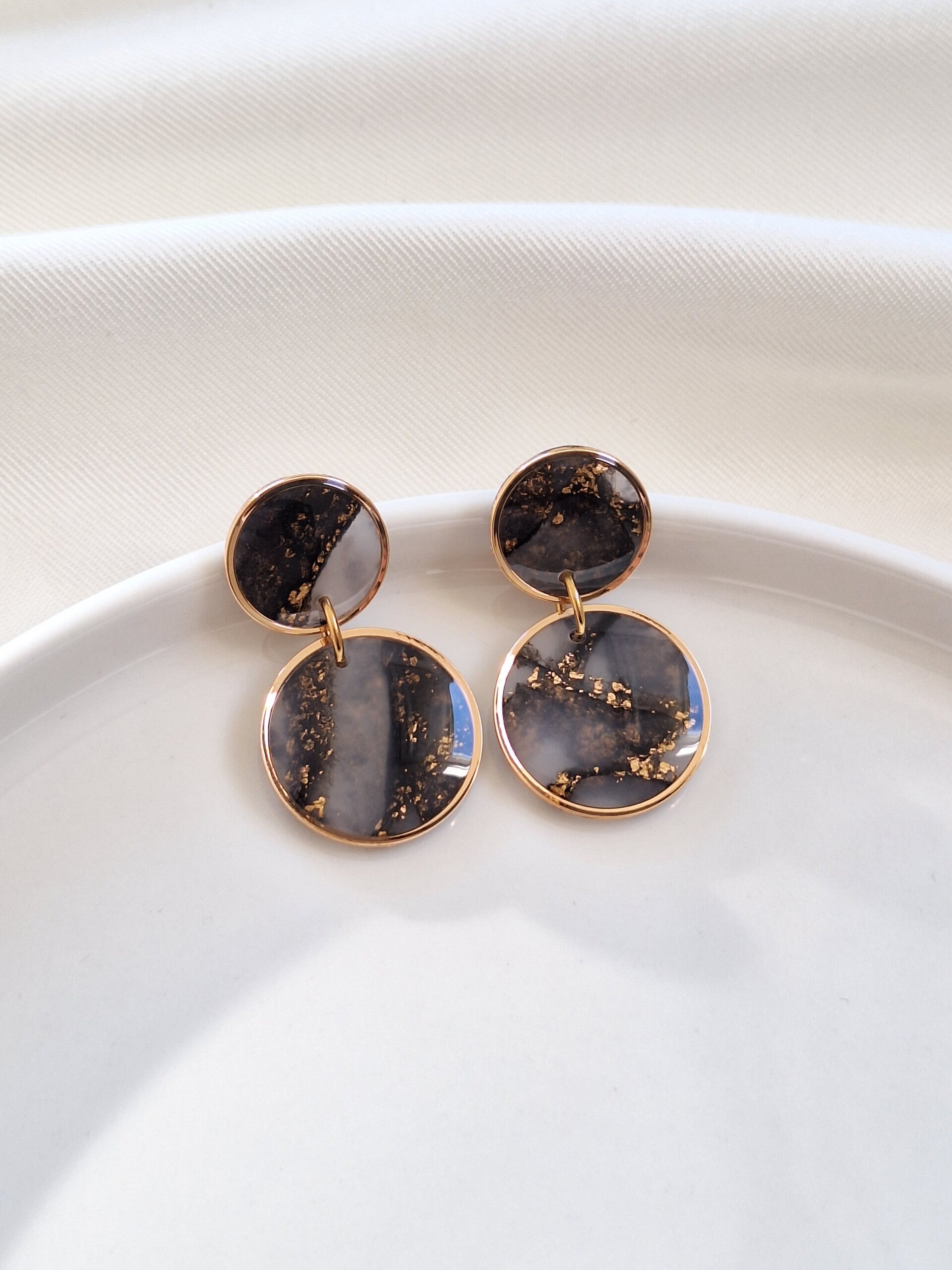 Deze oorbellen stralen elegantie en stijl uit. Met hun verfijnde ontwerp en lichte gewicht zijn ze perfect voor elke gelegenheid, van een avondje uit tot een chique daglook. Gemaakt van polymeerklei en voorzien van een glanslaagje, voegen ze een tijdloze en verfijnde touch toe aan je look.