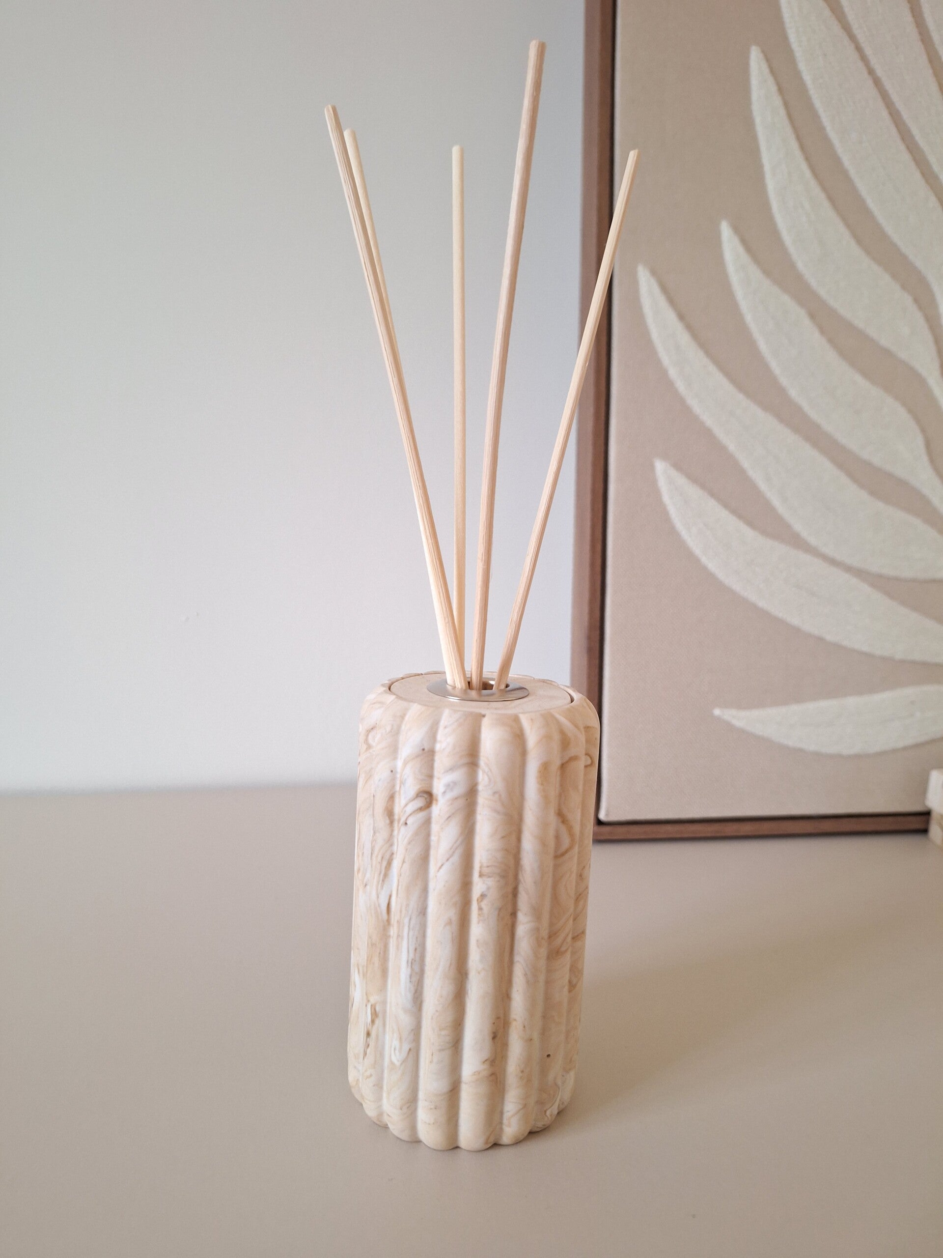 Deze stijlvolle geurstokjeshouder van Jesmonite heeft een verfijnd marmer effect dat zorgt voor een luxe uitstraling. Een elegante manier om je favoriete geur in huis te verspreiden én tegelijkertijd een mooi accent toe te voegen aan je interieur.