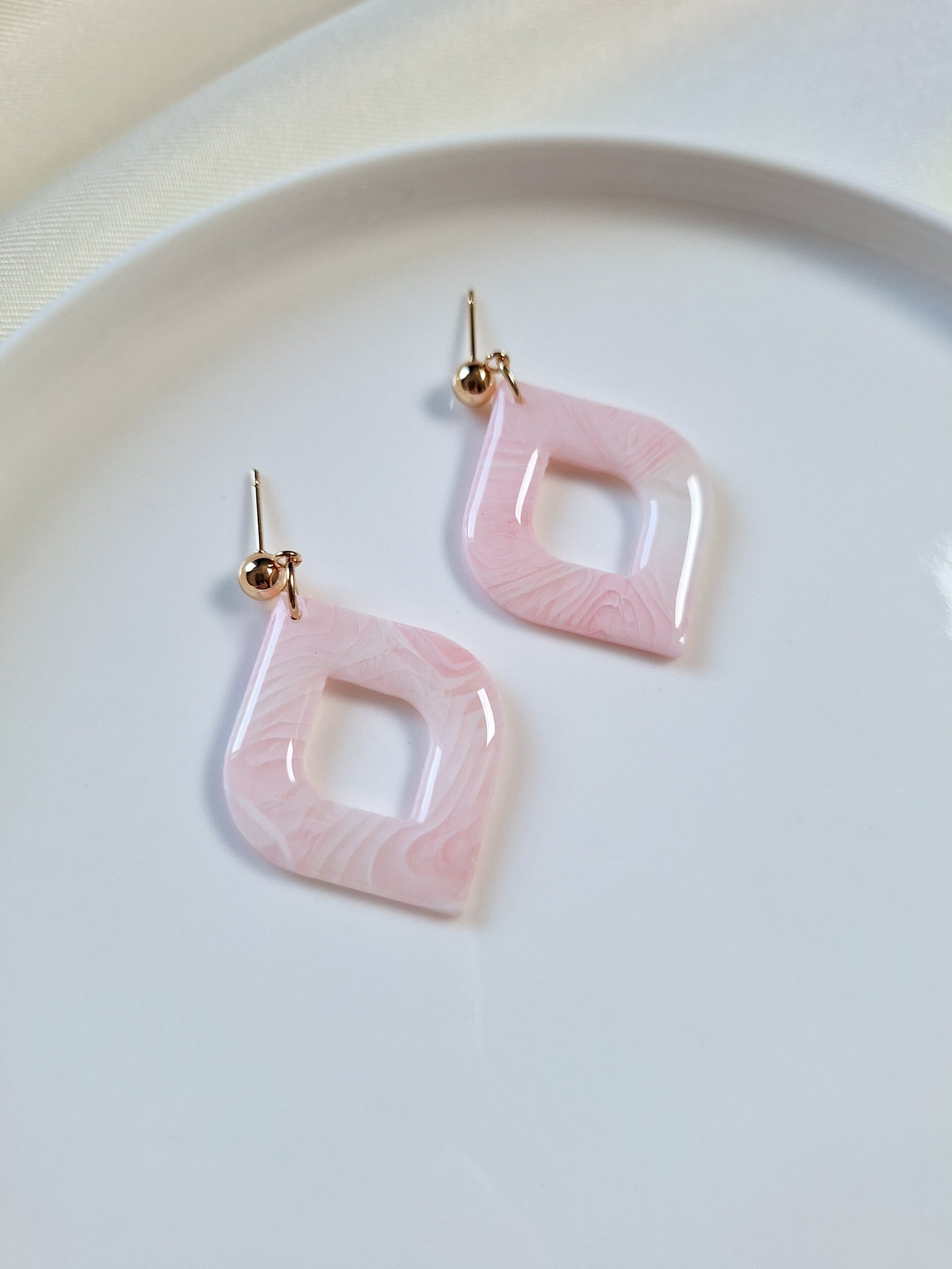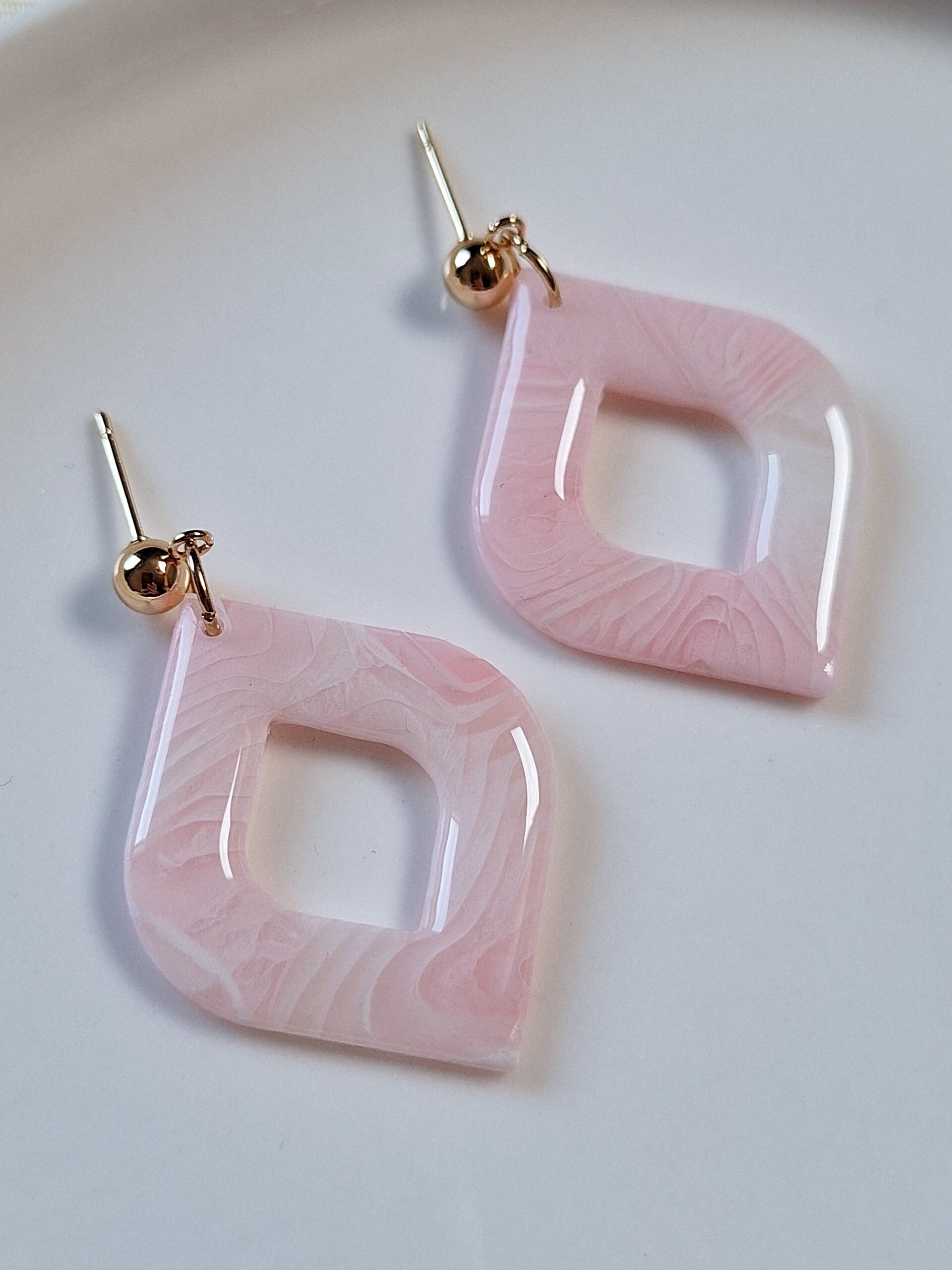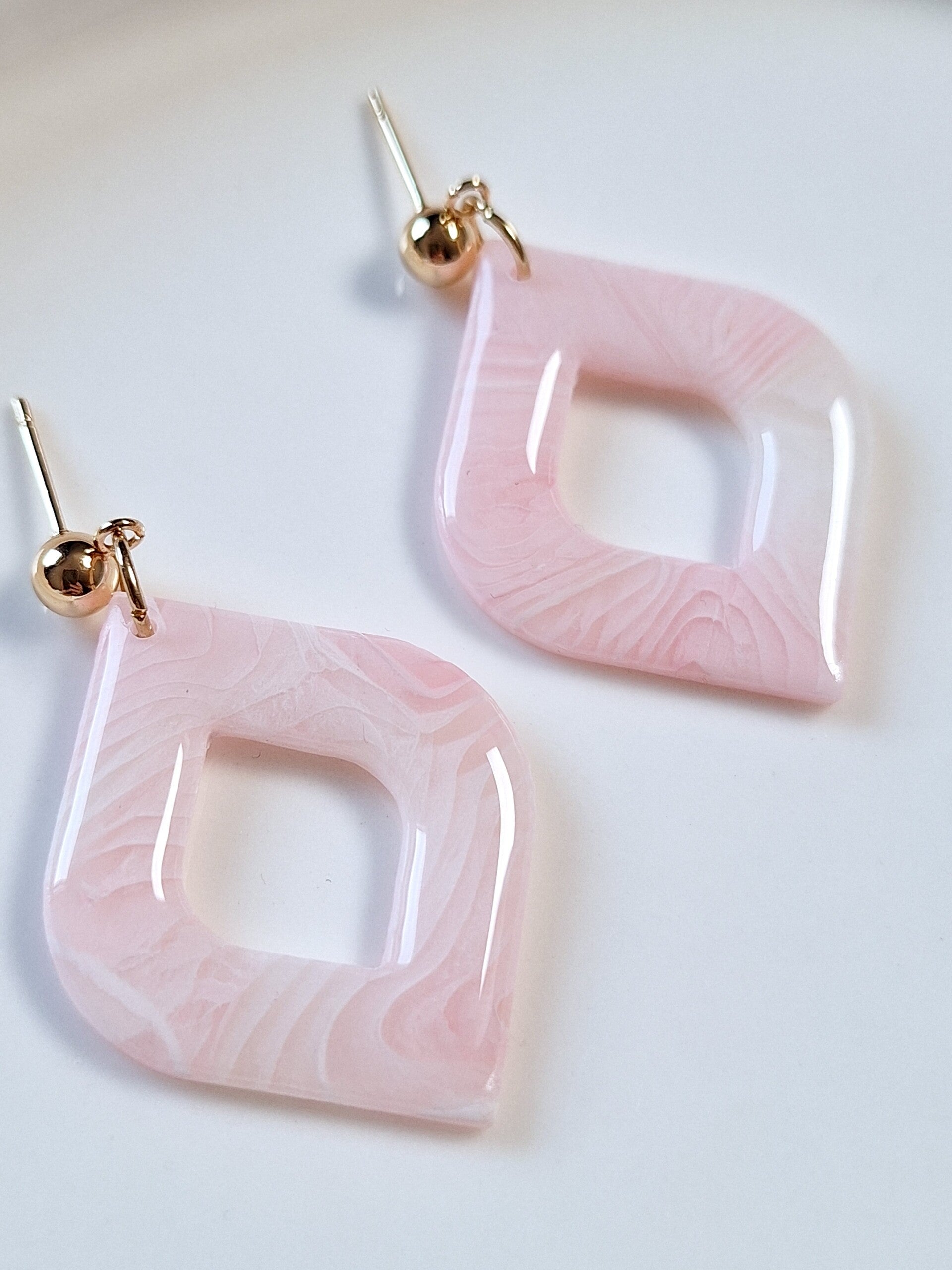 Deze oorbellen zijn gemaakt van transparante polymeerklei en zijn voorzien van een glanslaagje. Door het gebruik van transparante polymeerklei krijgen deze oorbellen een speels effect; afhankelijk van het licht veranderen ze subtiel van kleur, wat zorgt voor een unieke uitstraling.