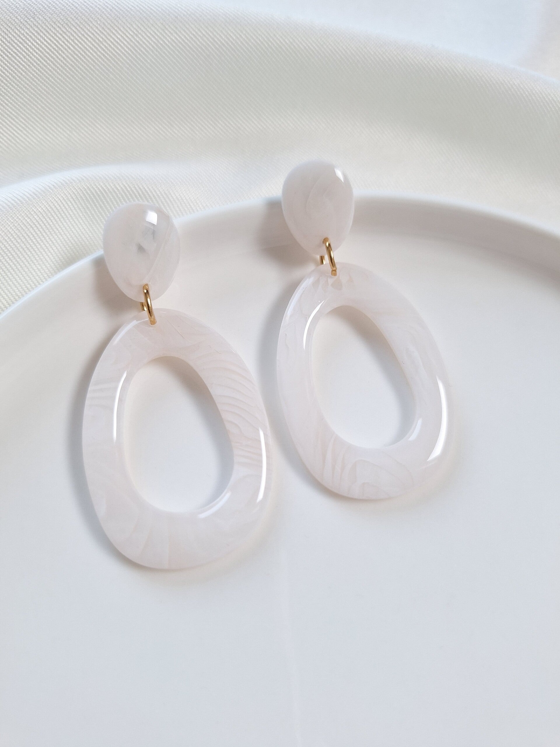 Deze oorbellen zijn gemaakt van transparante polymeerklei en zijn voorzien van een glanslaagje. Door het gebruik van transparante polymeerklei krijgen deze oorbellen een speels effect; afhankelijk van het licht veranderen ze subtiel van kleur, wat zorgt voor een unieke uitstraling.