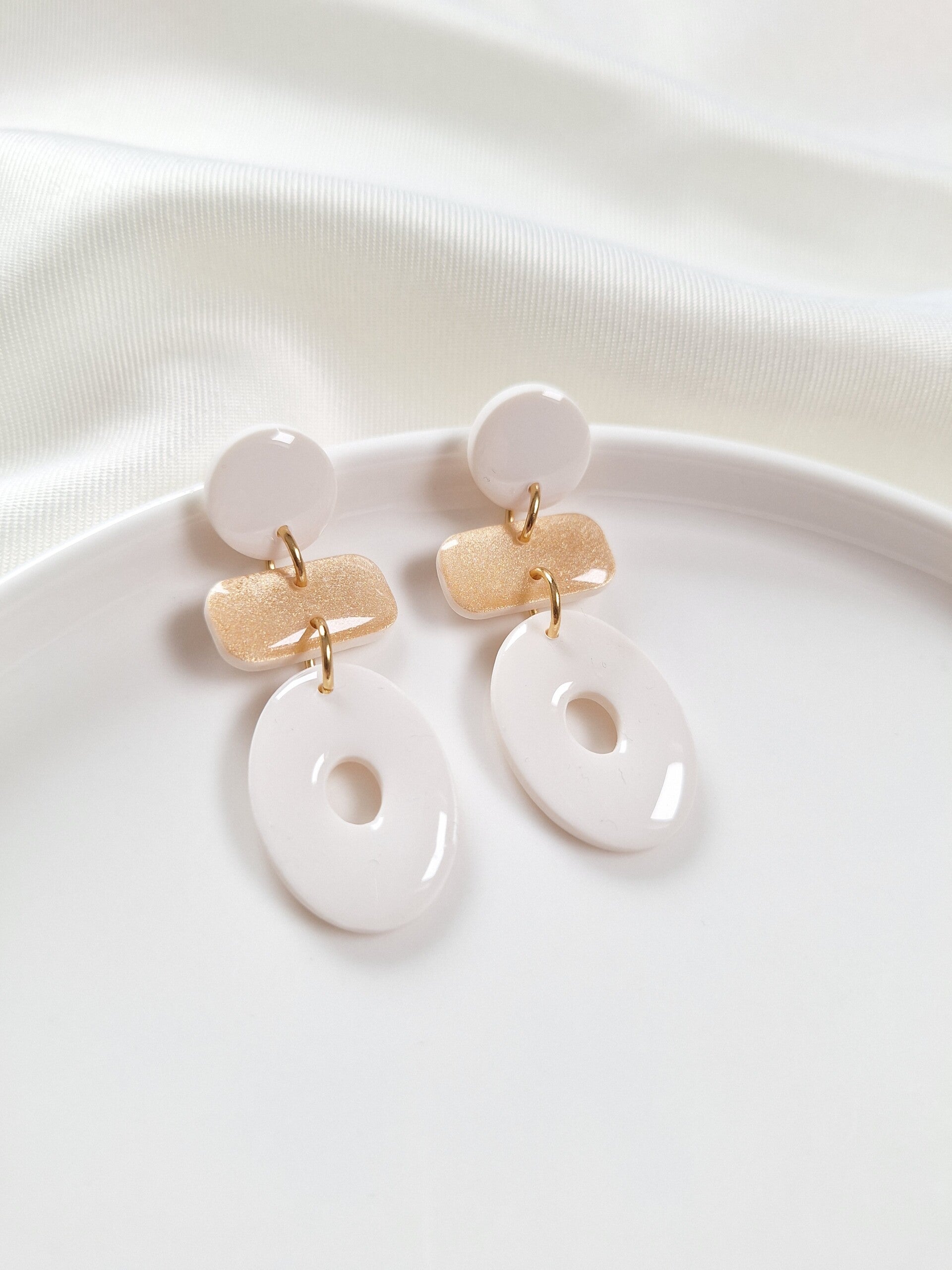 Deze oorbellen stralen elegantie en stijl uit. Met hun verfijnde ontwerp en lichte gewicht zijn ze perfect voor elke gelegenheid, van een avondje uit tot een chique daglook. Gemaakt van polymeerklei en voorzien van een glanslaagje.