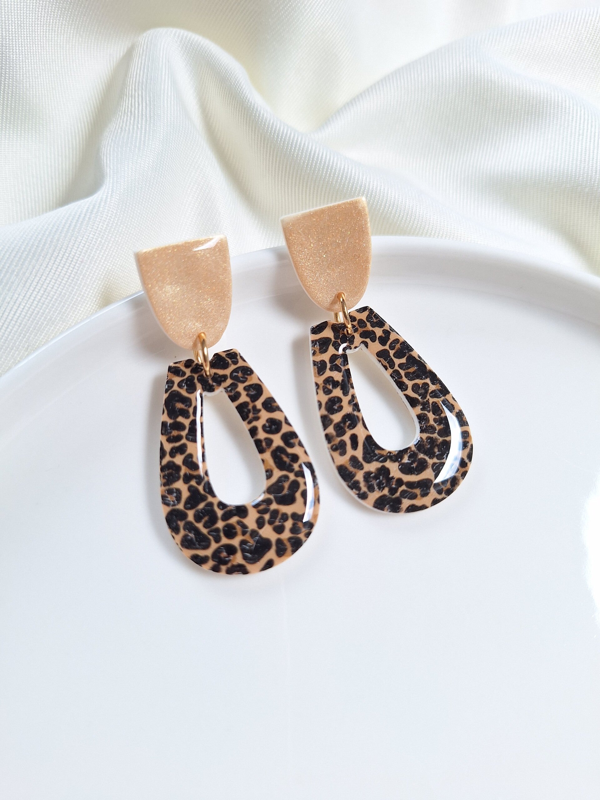 Deze stijlvolle oorbellen met panterprint voegen een speelse en modieuze touch toe aan je look. Gemaakt van polymeerklei en afgewerkt met een glanslaagje. Ze zijn licht van gewicht en uniek in design, perfect voor elke gelegenheid!