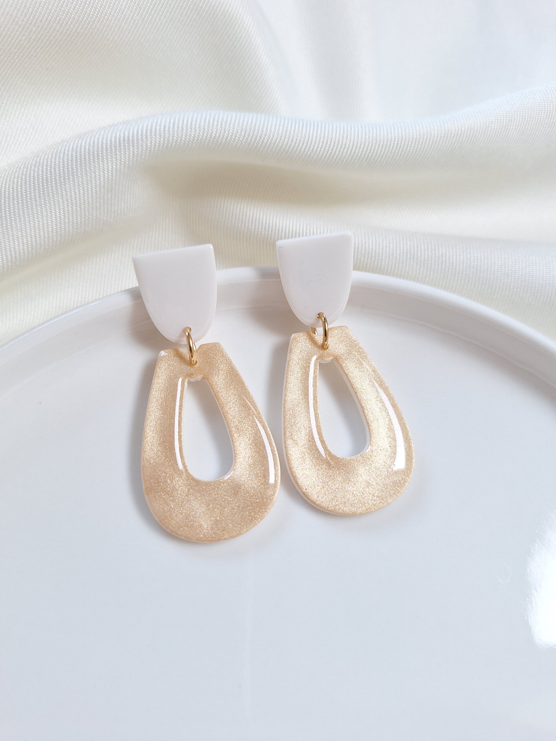 Deze oorbellen stralen elegantie en stijl uit. Met hun verfijnde ontwerp en lichte gewicht zijn ze perfect voor elke gelegenheid, van een avondje uit tot een chique daglook. Gemaakt van polymeerklei en voorzien van een glanslaagje.